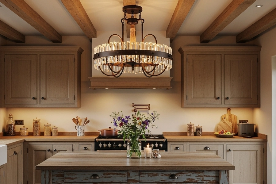 آشپزخانه به نور دقیق، قابلاعتماد و بدون ایجاد سایه اضافه نیاز دارد. برای خرید لوستر کریستالی مخصوص آشپزخانه، باید مدلی انتخاب شود که تمیز کردن آن آسان باشد، کریستالهای کوچکتر داشته باشد و در معرض چربی و بخار دوام کافی داشته باشد. لوسترهای خطی یا مدلهای جمعوجور کریستالی، بهخصوص در بالای جزیره یا میز ناهارخوری عملکرد خوبی دارند و همزمان روشنایی هدفمند فراهم میکنند.