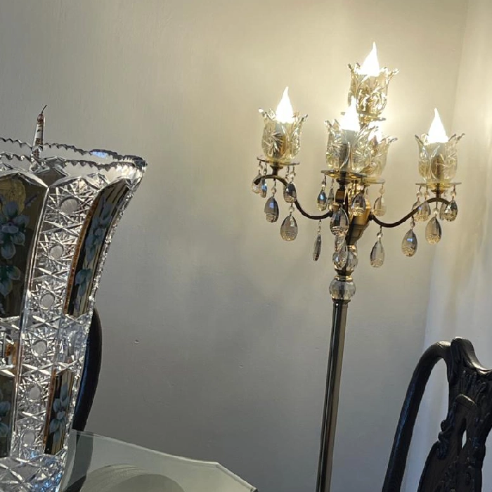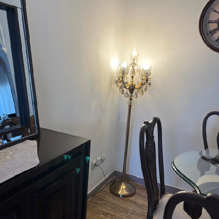 کلاهکهای آباژور کنار سالنی کد 297L از جنس بلور ساخته شده است که به آن جلوهای خاص و شفاف میبخشد. کلاهکها به رنگ شامپاینی هستند که در کنار رنگهای بدنه، تضادی زیبا و جذاب ایجاد میکنند. این آباژور دارای 5 سرپیچ E14 است که امکان استفاده از لامپهای مختلف را به شما میدهد. همچنین، با استفاده از سیم کلید دار، میتوانید به راحتی آباژور را روشن یا خاموش کنید.